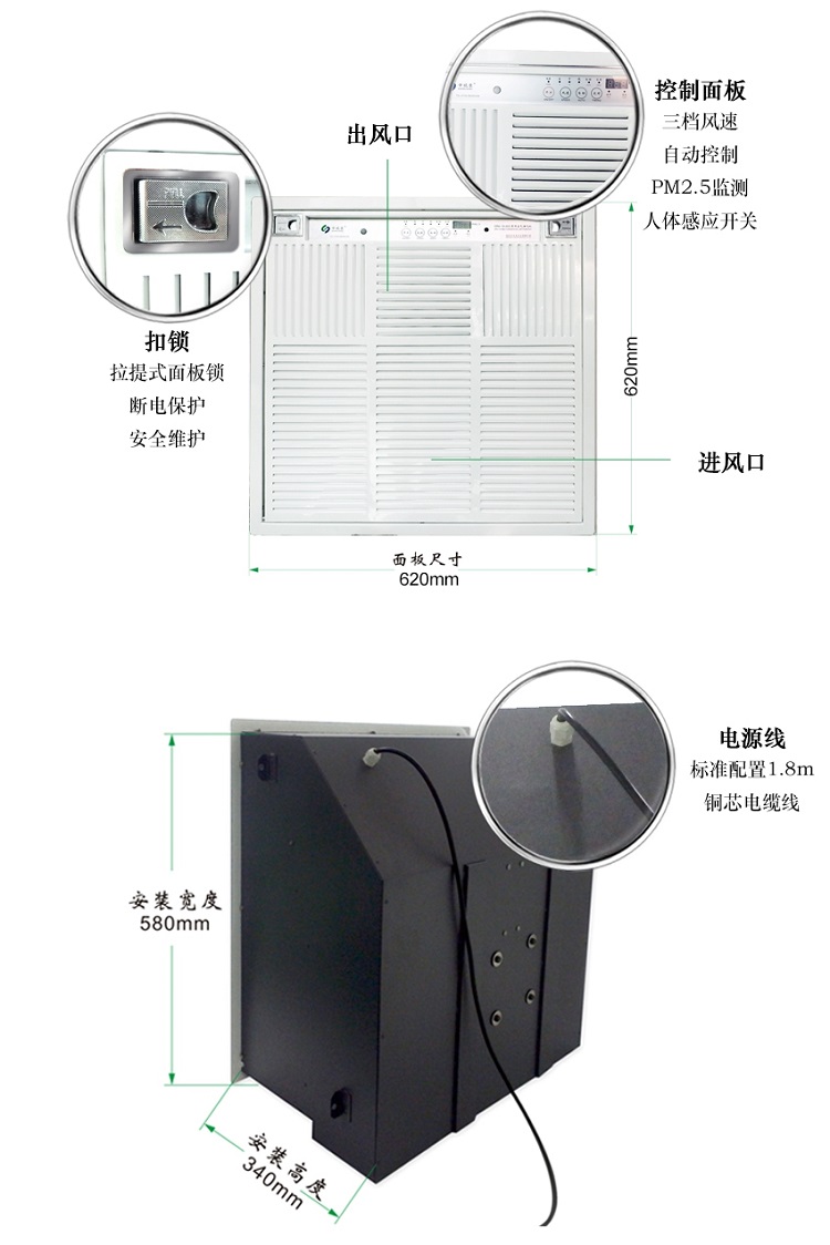 申瑞吸頂式空氣凈化器,內(nèi)置高壓靜電場(電子集塵室)+層流過濾網(wǎng)+活性炭吸附+負(fù)氧離子功能,高效凈化清新室內(nèi)空氣。